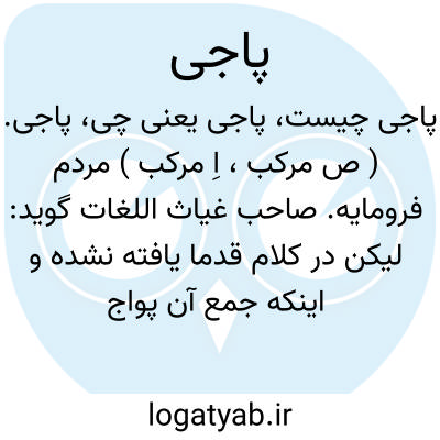 پاجی. ( ص مرکب، اِ مرکب ) مردم فرومایه. صاحب غیاث اللغات گوید: لیکن در کلام قدما یافته نشده و اینکه جمع آن پواج گویند از تصرف فارسی زبانان معتبر است و میتوان گفت که مرکب است از پا بمعنی تحت که مقابل فوق است و جی کلمه نسبت است چنانکه میانجی. برین تقدیر معنی ترکیبی منسوب به تحت باشد پس اطلاق آن بر فرومایه مجاز است - انتهی. در فارسی زبانان امروزی این کلمه و هم جمع آن شنیده نشده است.
