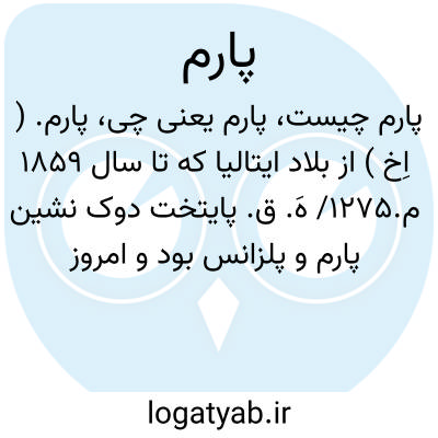 شهری در ایتالیا که تا ۱۸۵۹ م. پایتخت دوک نشین [ پارم و پلزانس ] بود و امروز کرسی ایالتی است به همین نام بر ساحل پارما دارای ۱۷۸٠٠٠ سکنه.