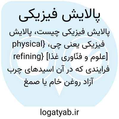 {physical refining} [علوم و فنّاوری غذا] فرایندی که در آن اسیدهای چرب آزاد روغن خام یا صمغ زدوده، بیشتر ازطریق تبخیر جدا می شوند و نه ازطریق حذف صابون با خنثی سازی در فرایند پالایش قلیایی