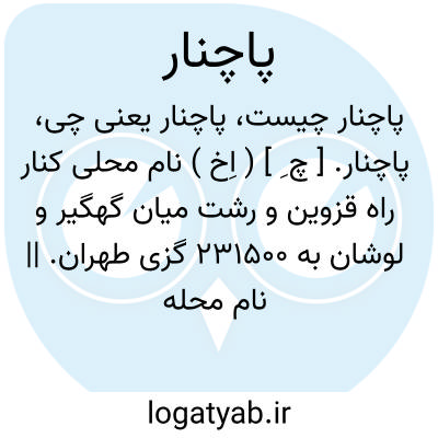 پاچنار. [ چ ِ ] ( اِخ ) نام محلی کنار راه قزوین و رشت میان گهگیر و لوشان به 231500 گزی طهران. || نام محله ای به طهران.