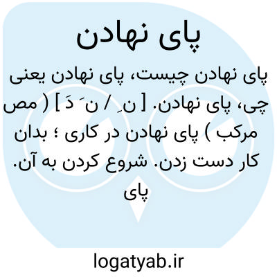 لغت نامه دهخدا پای نهادن. [ ن ِ / ن َ دَ ] ( مص مرکب ) پای نهادن در کاری؛ بدان کار دست زدن. شروع کردن به آن. پای نهادن بر چیزی؛ ترک کردن آن. ( غیاث اللغات ).