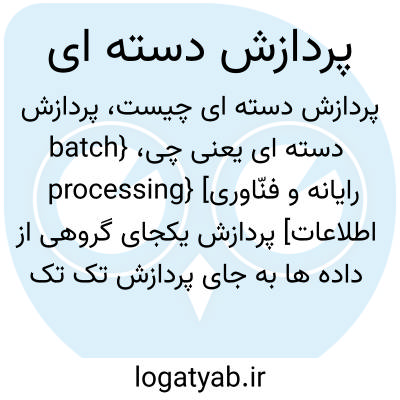 {batch processing} [رایانه و فنّاوری اطلاعات] پردازش یکجای گروهی از داده ها به جای پردازش تک تک آنها
