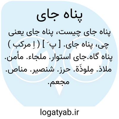 پناه جای. [ پ َ ] ( اِ مرکب ) پناه گاه.جای استوار. ملجاء. مأمن. ملاذ. مِلوذَة. حرز. شنصیر. مناص. مجعم. وَزَر. محجاء. ضبع. مَلحَص. سِحن. ملاز. مَثمل. مفازه. مَلحج. لجاء. ملیز. مَعقِل. مفزع. مفزعة. مَأوی. مأواة. عوذ. عواذ. عیاذ. معاذ. مَعکد. مُعتصر. وَعْل. وَغل. قلعة؛ پناه جای بر کوه که ازدشمن نگاهدارد. ( منتهی الارب ). || بست.