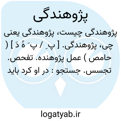 پژوهندگی. [ پ ِ / پ َ هََ دَ ] ( حامص ) عمل پژوهنده. تفحص. تجسس. جستجو: