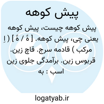 لغت نامه دهخدا پیش کوهه. [ هََ / هََ ] ( اِ مرکب ) قادمه سرج. قاچ زین. قربوس زین. برآمدگی جلوی زین اسب: به پیشکوهه زین برنهاده... چو یوغ سوار گشته بر آن مرکبان رهوارم.سوزنی.