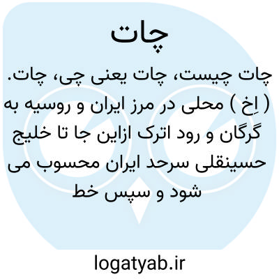 چات. ( اِخ ) محلی در مرز ایران و روسیه به گرگان و رود اترک ازاین جا تا خلیج حسینقلی سرحد ایران محسوب می شود و سپس خط مرزی بطرف شمال منحرف میگردد. دهی است در مرز ایران و روسیه واقع بین مقر طایقه یاموت و کوکلان.