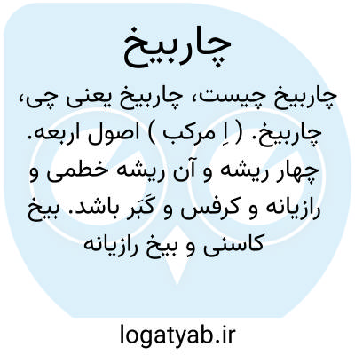 چاربیخ. ( اِ مرکب ) اصول اربعه. چهار ریشه و آن ریشه خطمی و رازیانه و کرفس و کَبَر باشد. بیخ کاسنی و بیخ رازیانه و بیخ کبر و بیخ کرفس را گویند. ( برهان ) ( آنندراج ). || ( ص مرکب ) دارای چهار ریشه. چارریشه. چاراصل: