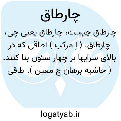 چارطاق. ( اِ مرکب ) اطاقی که در بالای سرایها بر چهار ستون بنا کنند. ( حاشیه برهان چ معین ). طاقی که بر چهارپایه استوار باشد بی دیوار: «... و چارطاقها بساختند از چوب سخت بلند و آن را به گز بیاکندند...». ( تاریخ بیهقی چ ادیب ص 450 ). || نوعی از خیمه چهارگوشه هم هست که آن را در عراق شروانی ودر هند راوئی گویند ( برهان ). نوعی از خیمه که از چهارقطعه مرکب سازند. ( آنندراج ). نوعی از خیمه چهارگوشه که شروانی نیز گویند. ( ناظم الاطباء ):