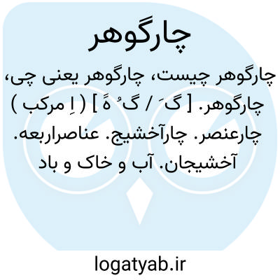 چارگوهر. [ گ َ / گ ُ هََ ] ( اِ مرکب ) چارعنصر. چارآخشیج. عناصراربعه. آخشیجان. آب و خاک و باد و آتش: