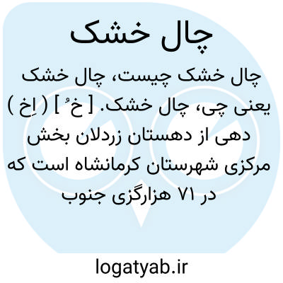 چال خشک. [ خ ُ ] ( اِخ ) دهی از دهستان زردلان بخش مرکزی شهرستان کرمانشاه است که در 71 هزارگزی جنوب خاوری کرمانشاهان و 29 هزارگزی سراب فیروزآباد واقع شده. کوهستانی و سردسیر است و 125 تن سکنه دارد. آبش از چشمه و محصولش غلات، لبنیات و تریاک میباشد. شغل اهالی زراعت و گله داری و تهیه هیزم و ذغال است. اهالی آنجا از طایفه کوشوند هستند و در تابستان به حدود کوه میروند.راهش مالرو است. ( از فرهنگ جغرافیائی ایران ج 5 ).