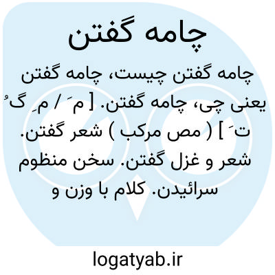 چامه گفتن. [ م َ / م ِ گ ُ ت َ ] ( مص مرکب ) شعر گفتن. شعر و غزل گفتن. سخن منظوم سرائیدن. کلام با وزن و قافیه ساختن. تصنیف ساختن. چکامه و غزل برای ممدوح یا بنام شخص مخصوص بنظم درآوردن: