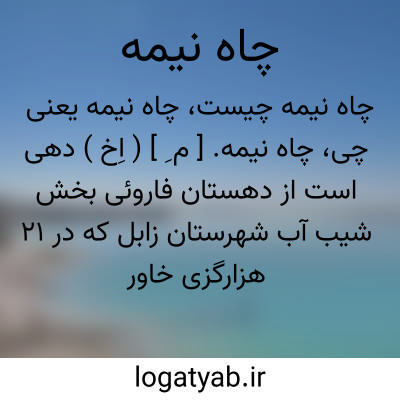 چاه نیمه. [ م ِ ] ( اِخ ) دهی است از دهستان فاروئی بخش شیب آب شهرستان زابل که در 21 هزارگزی خاور سکوهه، نزدیک مرز افغانستان واقع شده. جلگه و معتدل است و 90 تن سکنه دارد. آبش از رودخانه هیرمند، محصولش غلات، شغل اهالی زراعت وراهش مالرو است. ( از فرهنگ جغرافیایی ایران ج 8 ).