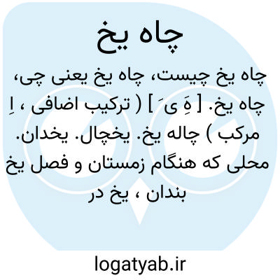چاه یخ. [ هَِ ی َ ] ( ترکیب اضافی، اِ مرکب ) چاله یخ. یخچال. یخدان. محلی که هنگام زمستان و فصل یخ بندان، یخ در آنجا ذخیره کنندو از آن یخ در تابستان استفاده نمایند:
