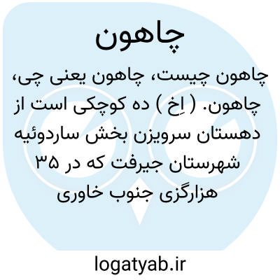 چاهون. ( اِخ ) ده کوچکی است از دهستان سرویزن بخش ساردوئیه شهرستان جیرفت که در 35 هزارگزی جنوب خاوری ساردوئیه و 2 هزارگزی شمال راه مالرو دارزین به ساردوئیه واقع شده و 22 تن سکنه دارد که از طایفه مهنی میباشند. ( از فرهنگ جغرافیایی ایران ج 8 ).
