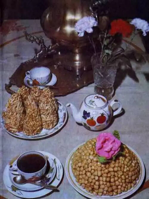 این دسر از تخم مرغ، عسل و آرد تهیه و بعد از پخت آغشته به شربت عسل می شود.