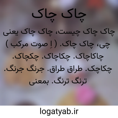 چاک چاک. ( اِ صوت مرکب ) چاکاچاک. چکاچاک. چکچاک. چکاچک. طراق طراق. جرنگ جرنگ. ترنگ ترنگ. بمعنی چاکاچاک است که صدای طراق طراق زدن شمشیر و خنجر و تبرزین و مانند آن باشد. ( برهان ) ( آنندراج ). صدای برخورد شمشیر و تبرزین و جز آن. ( ناظم الاطباء ). صدایی که از بهم خوردن سلاحهای جنگی برخیزد. آواز شکستن یا دریدن و پاره شدن چیزی: