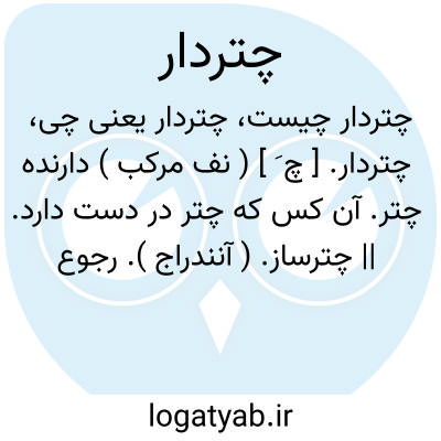 چتردار. [ چ َ ] ( نف مرکب ) دارنده چتر. آن کس که چتر در دست دارد. || چترساز. ( آنندراج ). رجوع به چترساز شود. || کنایه از پادشاه. کنایه از صاحب لوا و چتر. آنکه علامت شاهی و بزرگی دارد. || کسی که چتر بر سرپادشاه نگه میداشته. چترکش. ( آنندراج ):