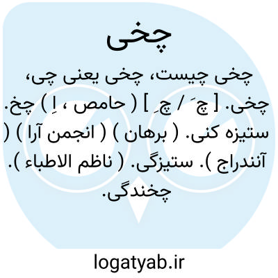 چخی. [ چ َ / چ ِ ] ( حامص، اِ ) چخ. ستیزه کنی. ( برهان ) ( انجمن آرا ) ( آنندراج ). ستیزگی. ( ناظم الاطباء ). چخندگی. || خصومت. || مناقشه. ( ناظم الاطباء ). || دم زنی. ( برهان ) ( انجمن آرا ) ( آنندراج ). || سعی و کوشش. ( ناظم الاطباء ). چخ. چخندگی. رجوع به چخ و چخندگی و چخیدن شود. || سگ، در زبان کودکان شیرخوار. سگ، در زبان اطفال. رجوع به چخه شود.