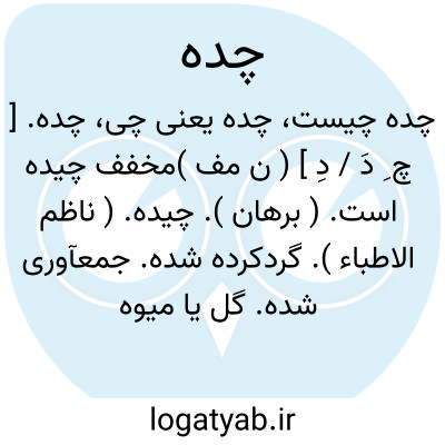 چده. [ چ ِ دَ / دِ ] ( ن مف )مخفف چیده است. ( برهان ). چیده. ( ناظم الاطباء ). گردکرده شده. جمعآوری شده. گل یا میوه کنده شده از درخت.