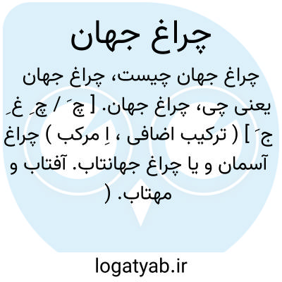 چراغ جهان. [ چ َ / چ ِ غ ِ ج َ ] ( ترکیب اضافی، اِ مرکب ) چراغ آسمان و یا چراغ جهانتاب. آفتاب و مهتاب. ( ناظم الاطباء ). || روشنی جهان. خورشید جهان: