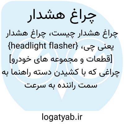 {headlight flasher} [قطعات و مجموعه های خودرو] چراغی که با کشیدن دسته راهنما به سمت راننده به سرعت روشن و خاموش می شود و از آن برای هشداردهی به رانندگان دیگر استفاده می شود