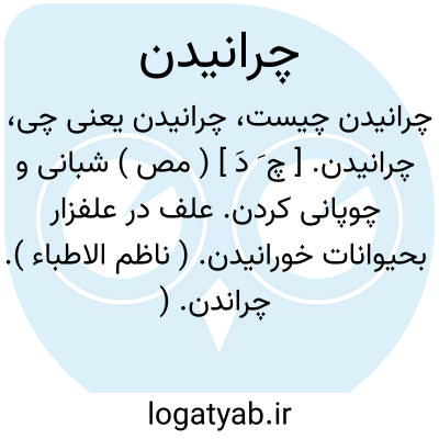 چرانیدن. [ چ َ دَ ] ( مص ) شبانی و چوپانی کردن. علف در علفزار بحیوانات خورانیدن. ( ناظم الاطباء ). چراندن. ( فرهنگ نظام ). چراندن حیوانات علف خوار در مرتع یا بیابان. ستوران و چارپایان چرائی را در چراگاه چرا دادن. چارپایان علف خوار را به چرا بردن و آنها را در مرتع به چرا واداشتن. اِرعاء. اِرتاع. اِسامة. رَعی. ( منتهی الارب ): و گفتند ما را اجازه ده تا اینجا باشیم و آب خوریم و چارپایان را بچرانیم. ( قصص الانبیاء ص 50 ). || علف مرتع را چراندن. سبزه و گیاه چراگاهی را بمصرف خوراک چارپایان رساندن. علفزاری را گذاشتن که ستوران چرنده علف آنرا بچرند. رجوع به چراندن شود.