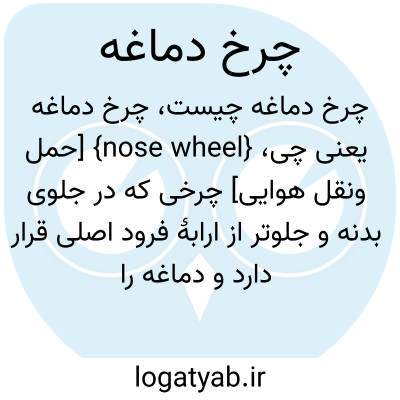 {nose wheel} [حمل ونقل هوایی] چرخی که در جلوی بدنه و جلوتر از ارابۀ فرود اصلی قرار دارد و دماغه را بر روی زمین نگه می دارد