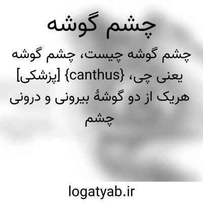 به عبارت دیگر، چشم گوشه زاویه ای است که در اثر به هم رسیدن پلک ها در گوشه های چشم تشکیل می شود. گوشه بیرونی چشم چشم گوشه کناری، و گوشه درونی نیز چشم گوشه میانی نام دارد. لایه کوچکی از پوست که گاهی گوشه درونی چشم را میپوشاند پرده چشم گوشه epicanthus نامیده می شود.