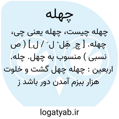 چهله. [ چ َهَْ ل ِ ] ( اِخ ) از قرای بلوک دشتستان فارس از نواحی تنگستان است. ( از مرآت البلدان ج 4 ص 304 و فارسنامه ناصری ). دهی است از دهستان حومه بخش خورموج شهرستان بوشهر. در 12هزارگزی شمال باختر خورموج و خاور کوه مند واقع است، 197 تن سکنه دارد. از چاه آبیاری میشود. محصولش غلات و خرما و شغل اهالی کشاورزی است. ( از فرهنگ جغرافیایی ایران ج 7 ).