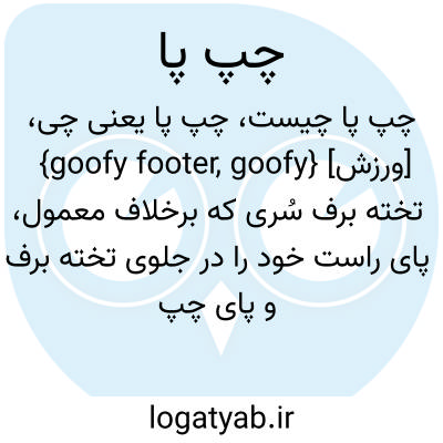 {goofy footer, goofy} [ورزش] تخته برف سُری که برخلاف معمول، پای راست خود را در جلوی تخته برف و پای چپ را در عقب آن قرار می دهد