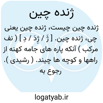 ژنده چین. [ ژَ / ژِدَ / دِ ] ( نف مرکب ) آنکه پاره های جامه کهنه از راهها و کوچه ها چیند. ( رشیدی ). رجوع به کهنه چین شود.