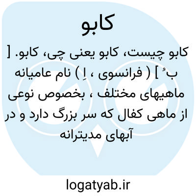 کابو. [ ب ُ ] ( فرانسوی، اِ ) نام عامیانه ماهیهای مختلف، بخصوص نوعی از ماهی کفال که سر بزرگ دارد و در آبهای مدیترانه و قناتهای عمومی زندگانی میکند.