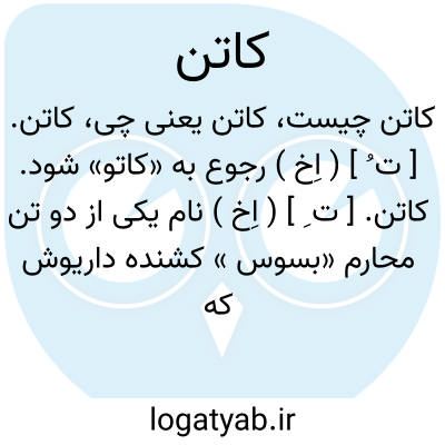 کاتن. [ ت ِ ] ( اِخ ) نام یکی از دو تن محارم «بسوس » کشنده داریوش که در تسلیم او به اسکندر باوی همداستان شد. مهارت او در تیراندازی بقدری بود که مرغ را در حال پرش میزد و با وجود اینکه ایرانیان در تیراندازی معروف بودند او را تیرانداز ماهر میدانستند. ( از تاریخ ایران باستان ج 2 ص 1698 - 1699 ).