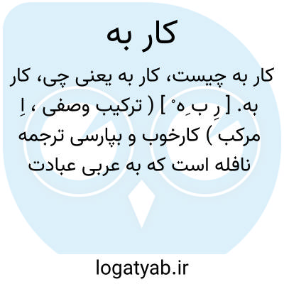 کار به. [ رِ ب ِه ْ ] ( ترکیب وصفی، اِ مرکب ) کارخوب و بپارسی ترجمه نافله است که به عربی عبادت ناواجب را گویند. ( آنندراج ) ( انجمن آراء ):