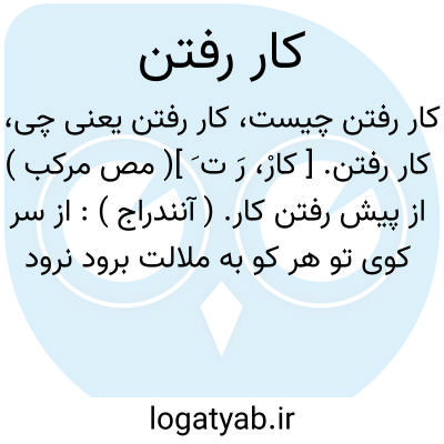 ( مصدر ) کار کردن بعمل پرداختن کار رفته. یا کار رفتن زن بد ( روسبی ). ۱ - پرداختن او بعمل بد. ۲ - انجام شدن کاری اجرا شدن عملی. یا کار رفتن از کسی یا چیزی. انجام شدن کار بدست او یا توسط آن: [ کار از تو میرود مددی ای دلیل راه. کانصاف میدهیم وز راه اوفتاده ایم ]. ( حافظ ۲۱۵۱ )