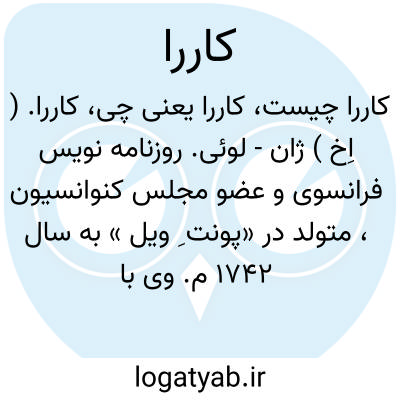 کاررا. ( اِخ ) ژان - لوئی. روزنامه نویس فرانسوی و عضو مجلس کنوانسیون، متولد در «پونت ِ ویل » به سال 1742 م. وی با ژیرندون ها به سال 1793 با گیوتین کشته شد.