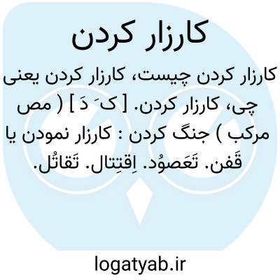 کارزار کردن. [ ک َ دَ ] ( مص مرکب ) جنگ کردن: کارزار نمودن یا قَفن. تَعَصوُد. اِقتِتال. تَقاتُل. عَیهَلَه. عَوهَلَه. غَیثَمَه. مُعارَکَه. عِراک. عُلعول. مَعمَعَه. ( منتهی الارب ). جِهاد. لَقیَة. ( دهار ). مُقاتَلَه. تَطریف. تَواطُح: موبد موبدان گفت... خود بجنگ ترک توجه کن که هیچ دشمن بدتر از ترک نیست یا خود برو یا سپاه بفرست با سپهسالاری جلد و مبارز تا با وی کارزار کند. ملک هرمز گفت احسنت نیکو گفتی. ( ترجمه طبری بلعمی ).