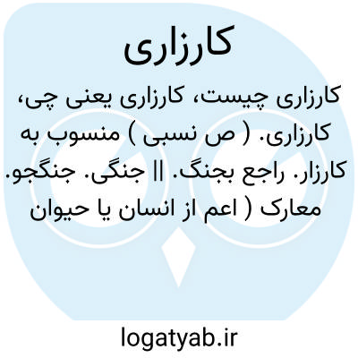 کارزاری. ( ص نسبی ) منسوب به کارزار. راجع بجنگ. || جنگی. جنگجو. معارک ( اعم از انسان یا حیوان ): پس هزار سوار بگزید ( سلیمان ) هر کدام مبارزتر و دلیرتر و کارزاری تر بود گفت شما بیائید تا با من برویم، ایشان اجابت کردند و برفتند. ( ترجمه طبری بلعمی ).