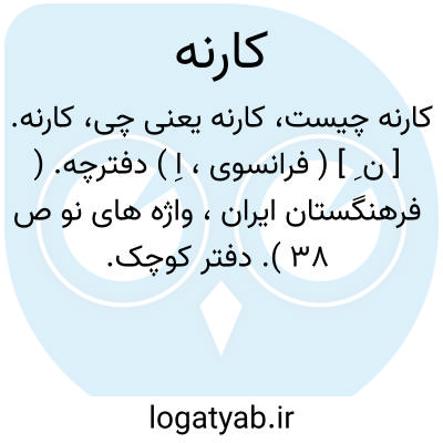 کارنه. [ ن ِ ] ( فرانسوی، اِ ) دفترچه. ( فرهنگستان ایران، واژه های نو ص 38 ). دفتر کوچک.