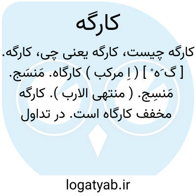 کارگه. [ گ َه ْ ] ( اِ مرکب ) کارگاه. مَنسَج. مَنسِج. ( منتهی الارب ). کارگه مخفف کارگاه است. در تداول امروز در خراسان آن را بالاخص بمعنی محل قالی بافی یا پارچه بافی آورند: