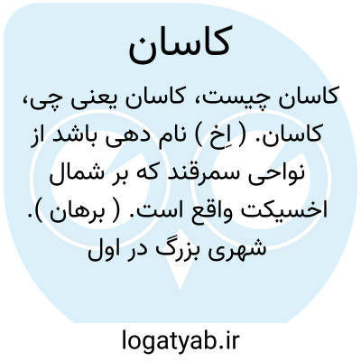 کاسان. ( اِخ ) نام دهی باشد از نواحی سمرقند که بر شمال اخسیکت واقع است. ( برهان ). شهری بزرگ در اول بلاد ترکستان ورای نهر سیحون و ورای شاش ( چاچ ) و دارای قلعه ای استوار است و بر باب آن وادی اخسیکث است. ( معجم البلدان ) ( برهان قاطع چ معین، حاشیه لغت کاسان ) در آنجا خوک بسیار است و الف و نون برای نسبت است و منسوب بدان شهر را کاسی و کاسانی گویند: