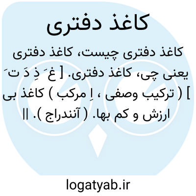 کاغذ دفتری. [ غ َ ذِ دَ ت َ ] ( ترکیب وصفی، اِ مرکب ) کاغذ بی ارزش و کم بها. ( آنندراج ). || کاغذ خطدار ک-ه ب-ا آن ام-روز دف-ت-رچ-ه ب-رای مش-ق دانش آموزان سازند.