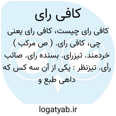 کافی رای. ( ص مرکب ) خردمند. تیزرای. بسنده رای. صائب رأی. تیزنظر: یکی از آن سه کس که داهی طبع و کافی رای بود. ( سندبادنامه ص 293 ). اما عظیم داهی و دانا و حاذق و کافی رای و بدیهه جواب. ( سندبادنامه ص 308 ).