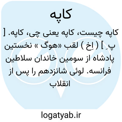 کاپه. [ پ ِ ] ( اِخ ) لقب «هوگ » نخستین پادشاه از سومین خاندان سلاطین فرانسه. لوئی شانزدهم را پس از انقلاب دهم اوت رسماً بدین نام خواندند.