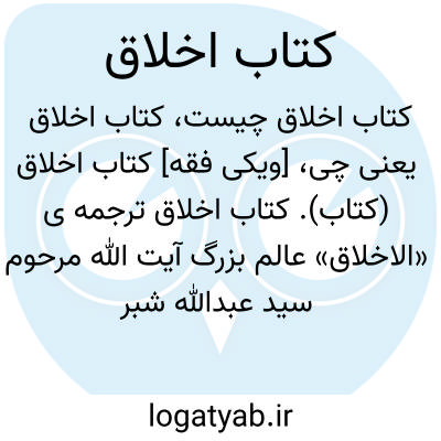 [ویکی فقه] کتاب اخلاق (کتاب). کتاب اخلاق ترجمه ی «الاخلاق» عالم بزرگ آیت الله مرحوم سید عبدالله شبر قدس سره می باشد که حجة الاسلام و المسلمین آقای شیخ محمدرضا جباران آن را ترجمه نموده است.