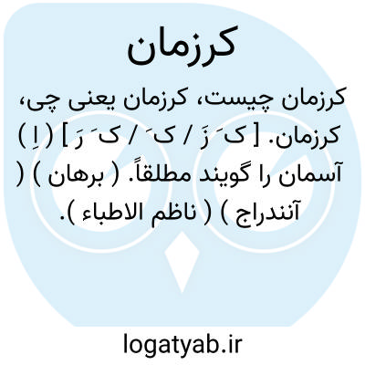 کرزمان. [ ک َ زَ / ک َ / ک َ رَ ] ( اِ ) آسمان را گویند مطلقاً. ( برهان ) ( آنندراج ) ( ناظم الاطباء ). || عرش اعظم هم گفته اند که آسمان نهم باشد. ( برهان ). عرش خداوند عالم که آسمان نهم باشد. ( ناظم الاطباء ). در ادات به کاف فارسی گفته است، لیکن در لغت زند خواهد آمد که اصح کرشمان و کرژمان به ضم رای مهمله و ضم شین و زای فارسی است. ( آنندراج ) ( انجمن آرا ). اما گفته صاحب انجمن آرا و به تبع اوآنندراج بر اساسی نیست و کلمه با کاف فارسی است و صحیح گرزمان است. ( حاشیه برهان چ معین ):