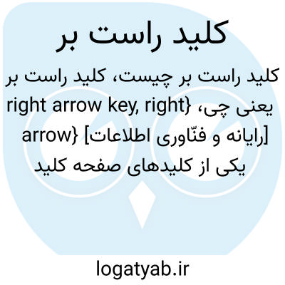 {right arrow key, right arrow} [رایانه و فنّاوری اطلاعات] یکی از کلیدهای صفحه کلید رایانه که فشار دادن آن باعث حرکت مکان نما معمولاً به اندازۀ یک نویسه به سمت راست می شود متـ. راست بَر