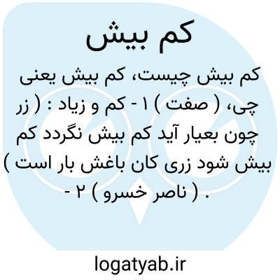 ( صفت ) ۱ - کم و زیاد: ( زر چون بعیار آید کم بیش نگردد کم بیش شود زری کان باغش بار است ). ( ناصر خسرو ) ۲ - تقریبا در حدود قریب: ( ز اول رفت خواهم چند گاهی درنگ من بود کم بیش ماهی ). ( ویس ورامین )