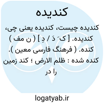 کندیده. [ ک َ دَ / دِ ] ( ن مف ) کنده. ( فرهنگ فارسی معین ). کنده شده: ظلم الارض؛ کند زمین را در غیر جای کندیده. ( منتهی الارب از یادداشت به خط مرحوم دهخدا ). || واداشته به کندن. ( فرهنگ فارسی معین ): زاب نام پادشاهی است از پادشاهان فرس که این همه انهار کندیده اوست. ( منتهی الارب از فرهنگ فارسی معین ). و رجوع به منتهی الارب ذیل «زوب » شود.، کن دیده. [ ک َ دِ ] ( اِخ ) دهی از دهستان بهمئی گرمسیر است که در بخش کهکیلویه شهرستان بهبهان واقع است و 120 تن سکنه دارد. ( از فرهنگ جغرافیایی ایران ج 6 ).