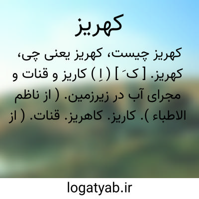 ( اسم ) ۱ - مجرای آب در زیر زمین قنات: [ کسانی که شهرها و دیه ها و بناها و کاریزهاساختند... بگذاشتند و برفتند ]. ( بیهقی ) ۲ - بر گریز بر گریزان ( قس. کهریز ): [ خونریز شاخدار خوش آمد بروز عید در موسمی که باشد کاریز شاخسار ]. ( سوزنی )